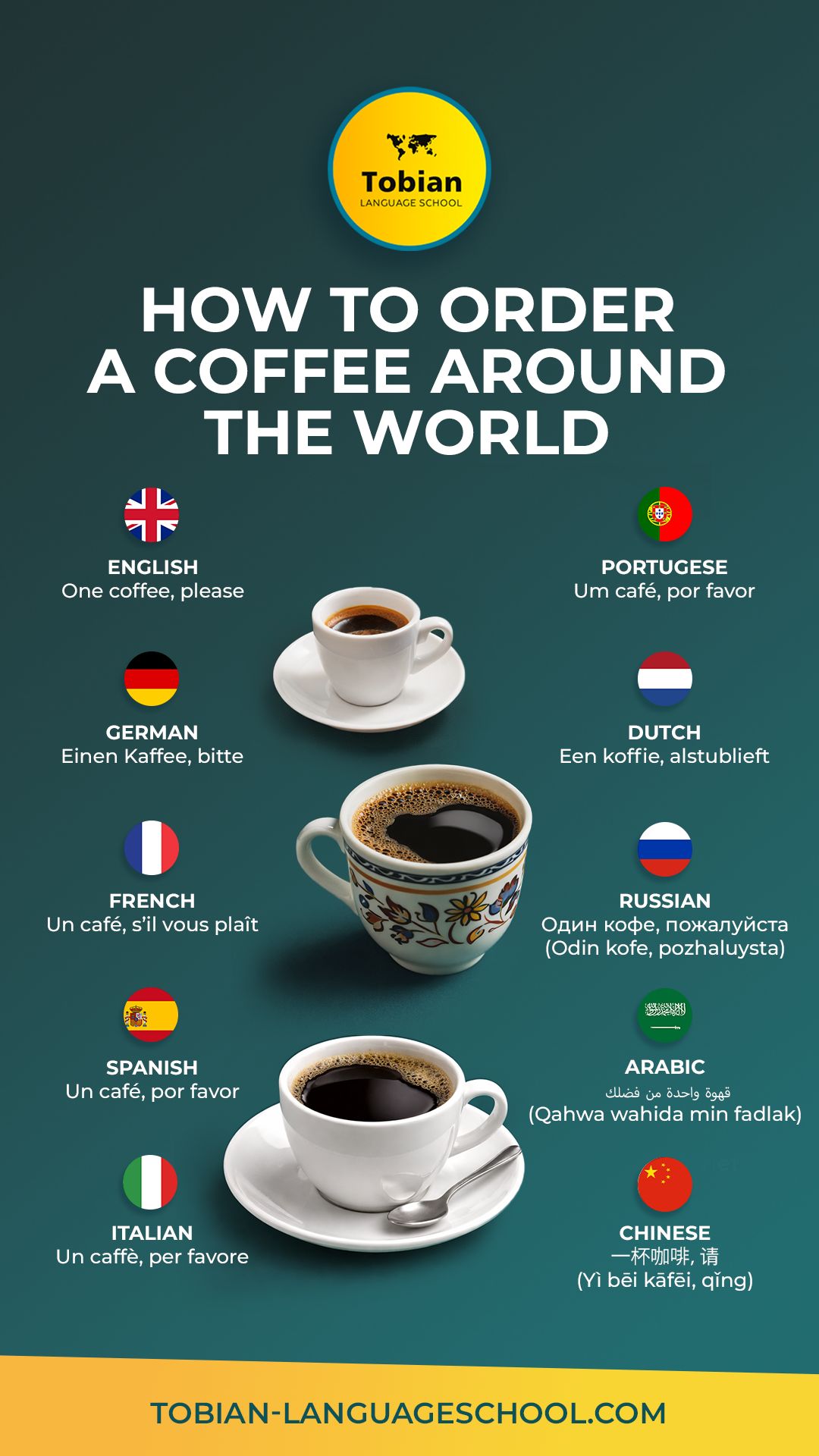 At Tobian Language School, we believe that learning a new language starts with the essentials. And what is more essential than ordering your morning brew?